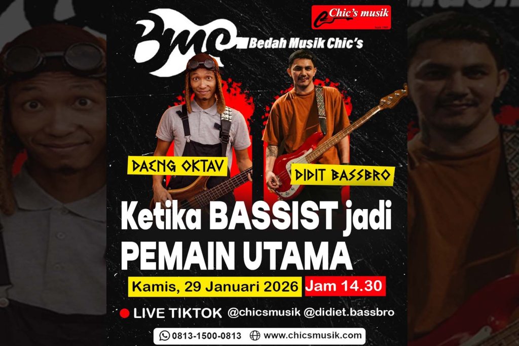 🎸🔥 KETIKA BASSIST JADI PEMAIN UTAMA! 🔥🎸 Bukan cuma ngisi groove…kali ini BASSIST ADA DI DEPAN! Bedah Musik Chic’s menghadirkan:⚡ DAENG OKTAV⚡ DIDIT BASSBRO Kupas tuntas peran bass, karakter sound, teknik, dan mindset saat bassist tampil sebagai pemain utama di panggung musik 🎶🔥 🗓 Kamis, 29 Januari 2026⏰ Jam 14.30 WIB📍 LIVE TikTok👉 @chicsmusik👉 @didiet.bassbro […]